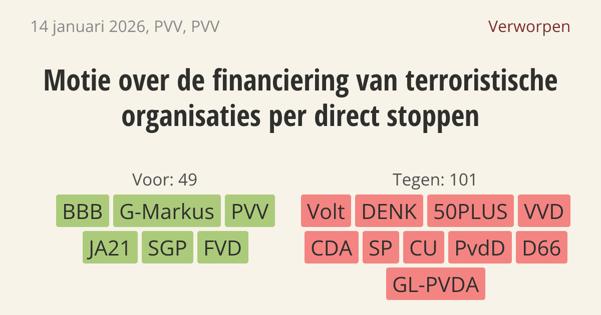 Verworpen op 20 januari: 49 - 101