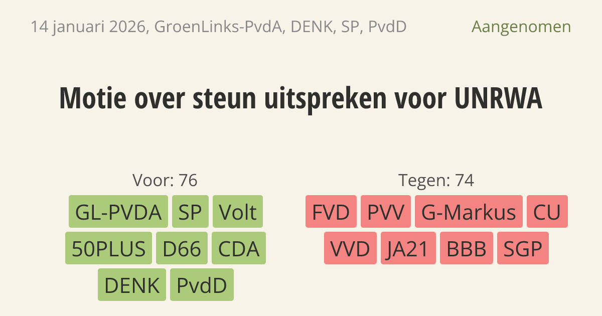 De regering moet UNRWA weer steunen en de banden met deze VN-organisatie herstellen. In de Palestijnse gebieden is een humanitaire crisis en UNRWA vormt de belangrijkste basis voor noodhulp. Nederland moet pal staan voor hulporganisaties nu hun werk onmogelijk wordt gemaakt.