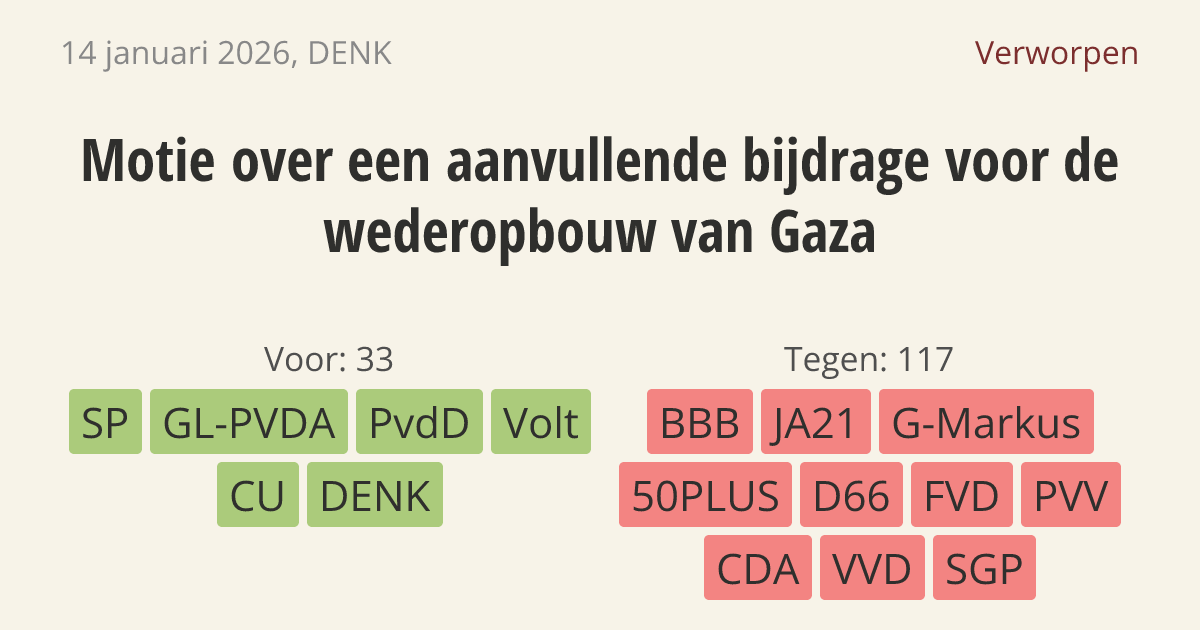 Motie van het lid Van Baarle over een aanvullende bijdrage voor de wederopbouw van Gaza