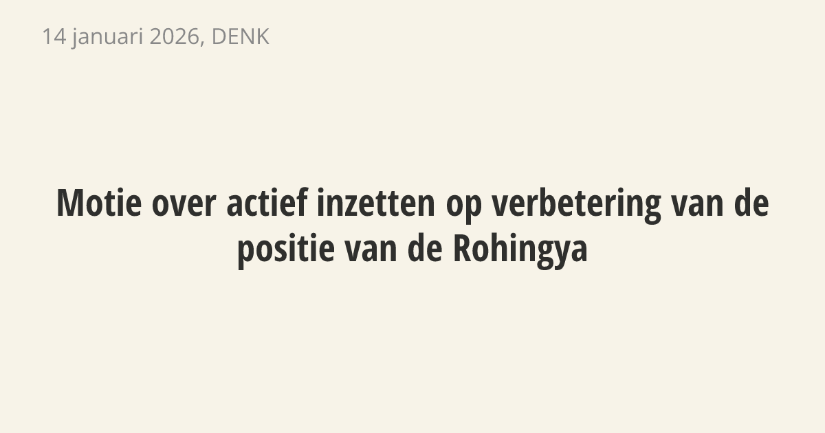 in te zetten voor de verbetering van de positie van de Rohingya, met