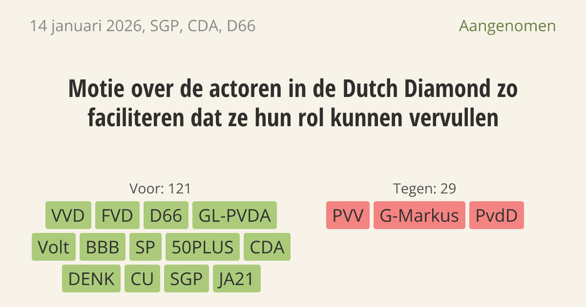 Motie van het lid Stoffer c.s. over de actoren in de Dutch Diamond zo faciliteren dat ze hun rol kunnen vervullen