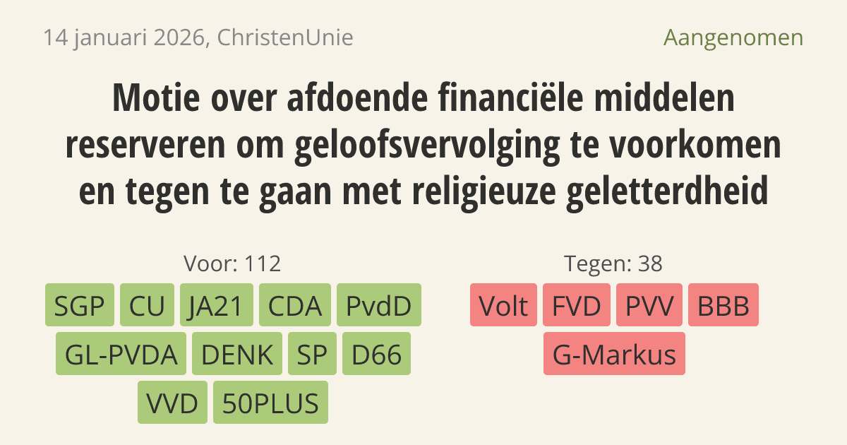 Aangenomen op 20 januari: 112 - 38