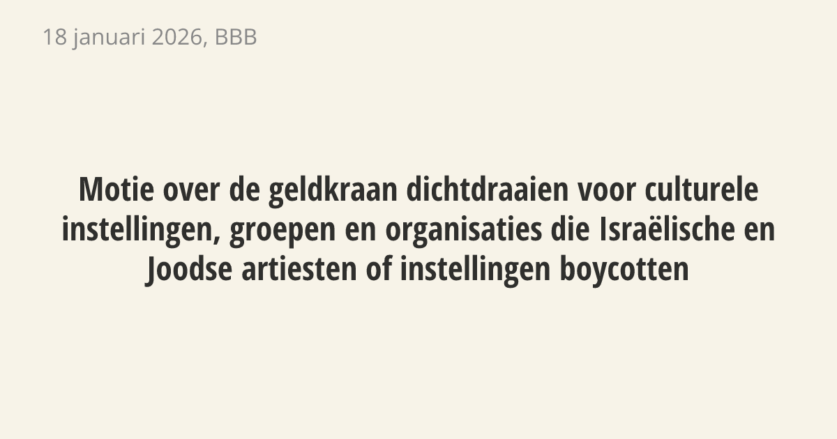 Motie van het lid Van der Plas over de geldkraan dichtdraaien voor culturele instellingen, groepen en organisaties die Israëlische en Joodse artiesten of instellingen boycotten