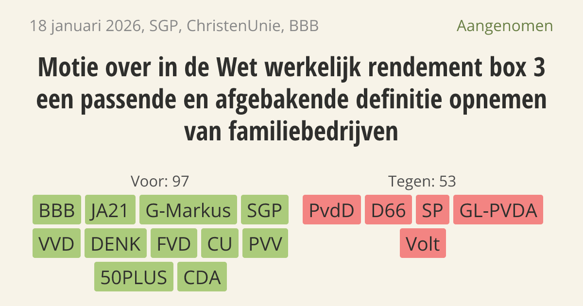 Motie van het lid Stoffer c.s. over in de Wet werkelijk rendement box 3 een passende en afgebakende definitie opnemen van familiebedrijven