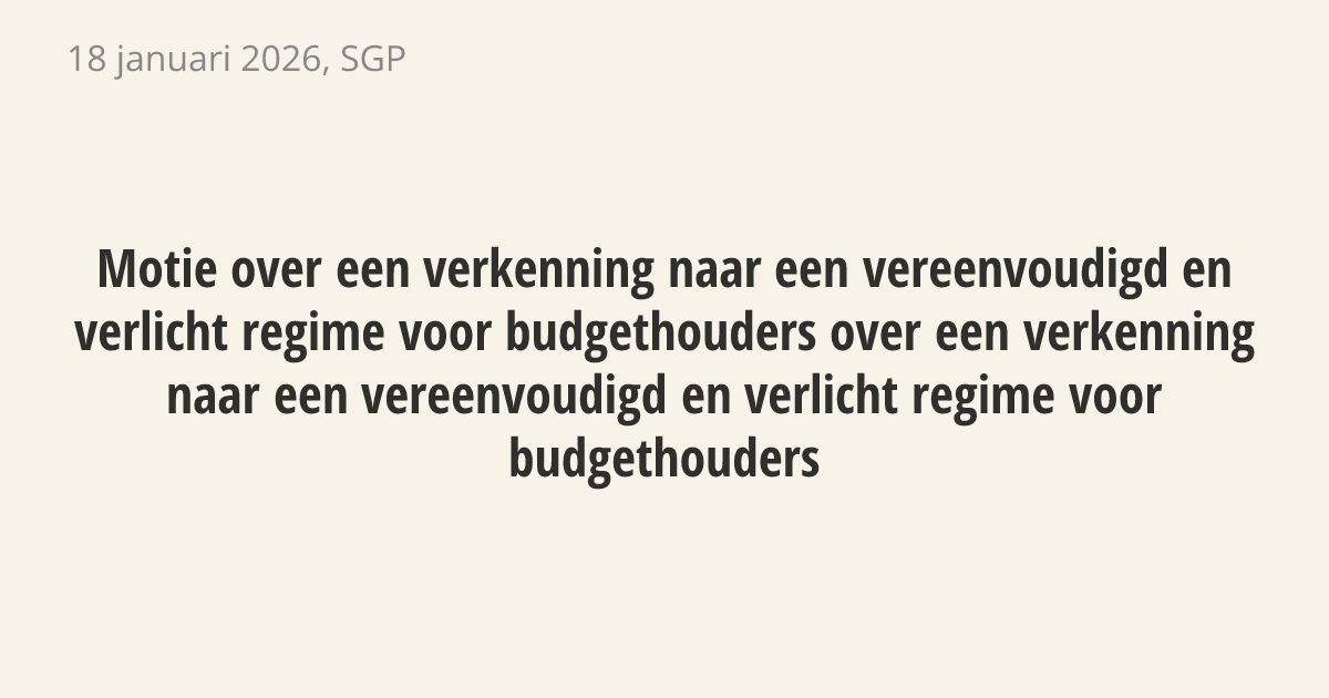 Motie van het lid Flach over een verkenning naar een vereenvoudigd en verlicht regime voor budgethouders over een verkenning naar een vereenvoudigd en verlicht regime voor budgethouders