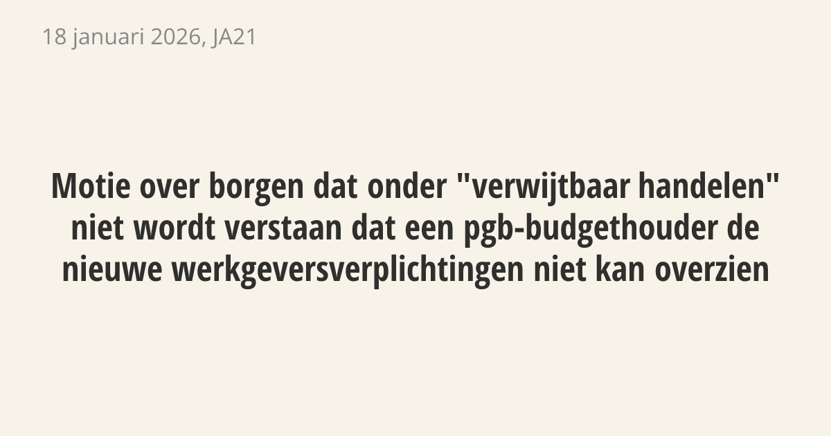 Motie van het lid Ceulemans over borgen dat onder "verwijtbaar handelen" niet wordt verstaan dat een pgb-budgethouder de nieuwe werkgeversverplichtingen niet kan overzien