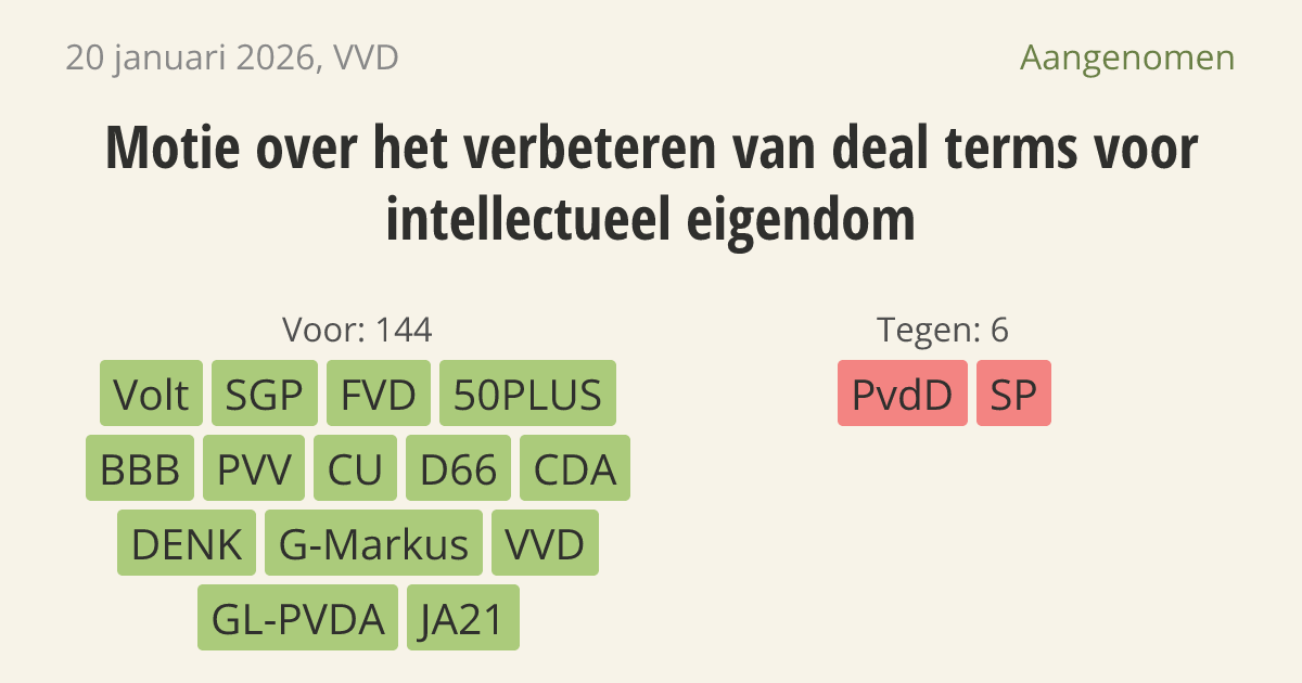Aangenomen op 27 januari: 144 - 6
