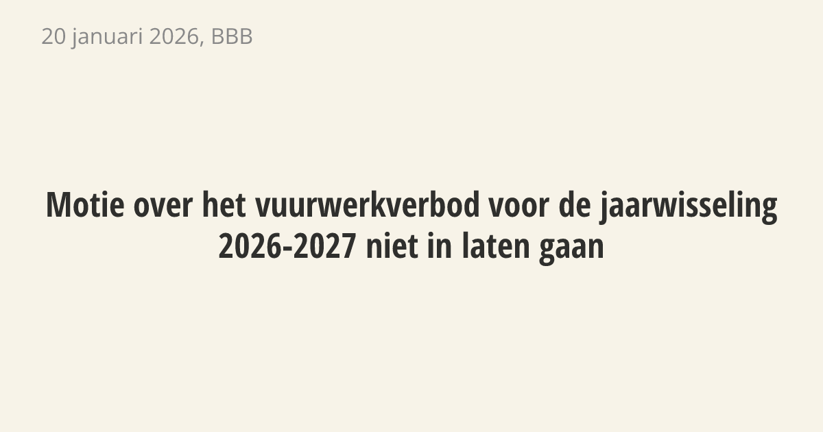 Motie van het lid Van der Plas over het vuurwerkverbod voor de jaarwisseling 2026-2027 niet in laten gaan