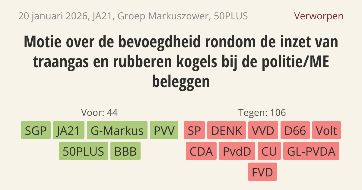 Motie van het lid Coenradie c.s. over de bevoegdheid rondom de inzet van traangas en rubberen kogels bij de politie/ME beleggen
