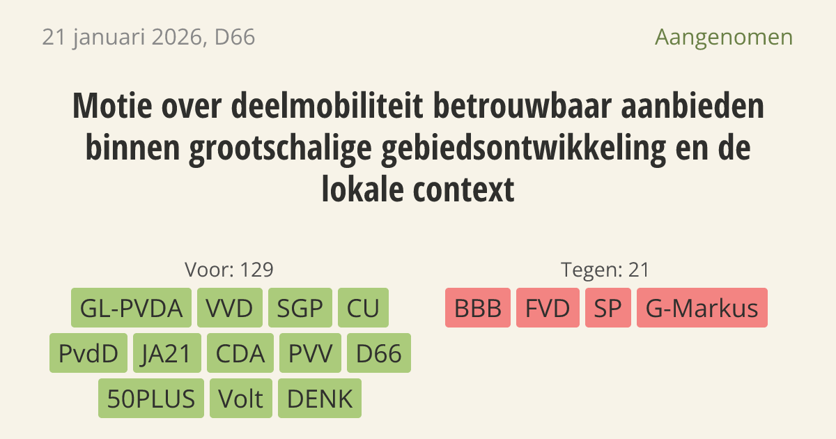 Motie van het lid Van Asten over deelmobiliteit betrouwbaar aanbieden binnen grootschalige gebiedsontwikkeling en de lokale context