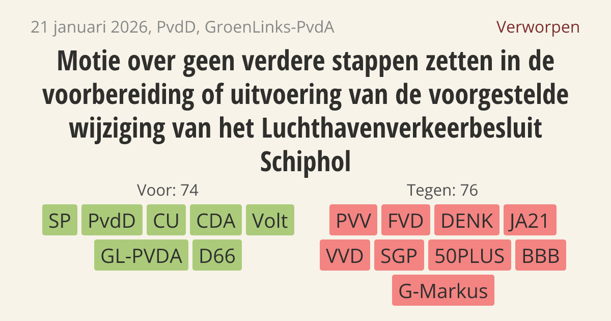 Motie van de leden Kostic en Kröger over geen verdere stappen zetten in de voorbereiding of uitvoering van de voorgestelde wijziging van het Luchthavenverkeerbesluit Schiphol