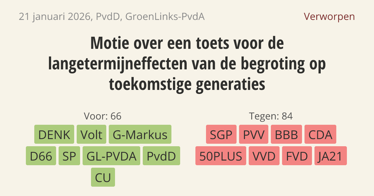 Verworpen op 27 januari: 66 - 84
