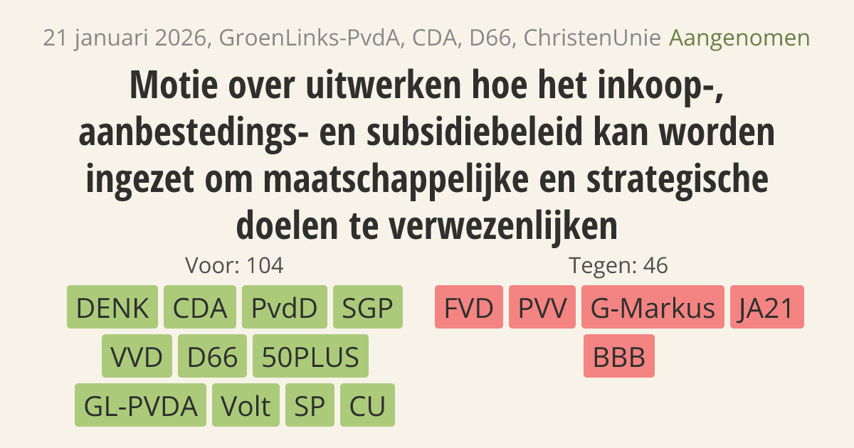 Motie van het lid Van der Lee c.s. over uitwerken hoe het inkoop-, aanbestedings- en subsidiebeleid kan worden ingezet om maatschappelijke en strategische doelen te verwezenlijken