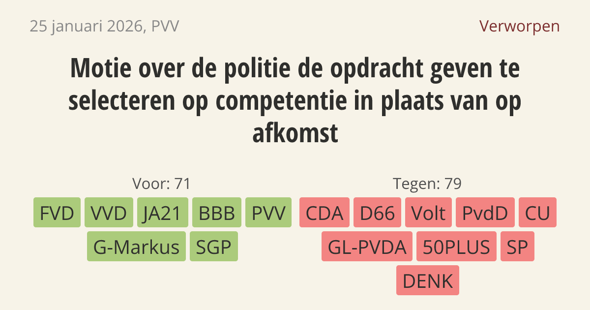 Motie van het lid Faber over de politie de opdracht geven te selecteren op competentie in plaats van op afkomst