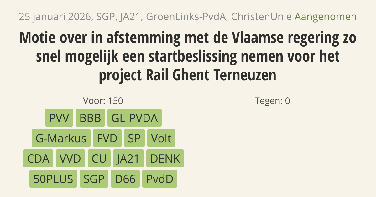 Aangenomen op 4 februari: 150 - 0