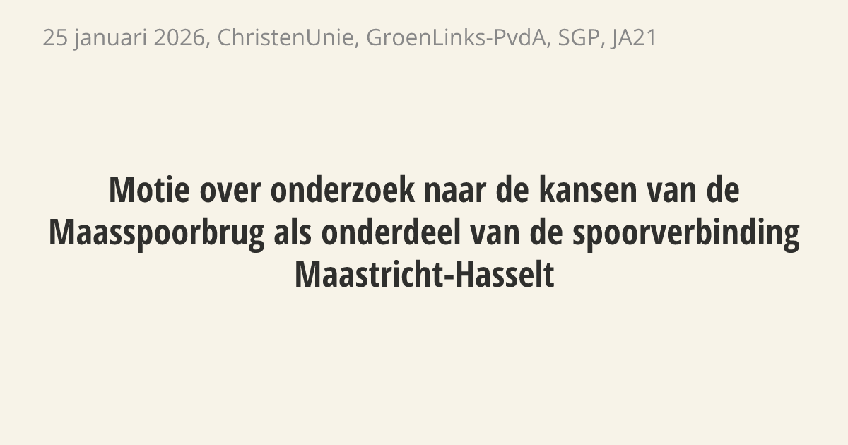 Motie van het lid Grinwis c.s. over onderzoek naar de kansen van de Maasspoorbrug als onderdeel van de spoorverbinding Maastricht-Hasselt