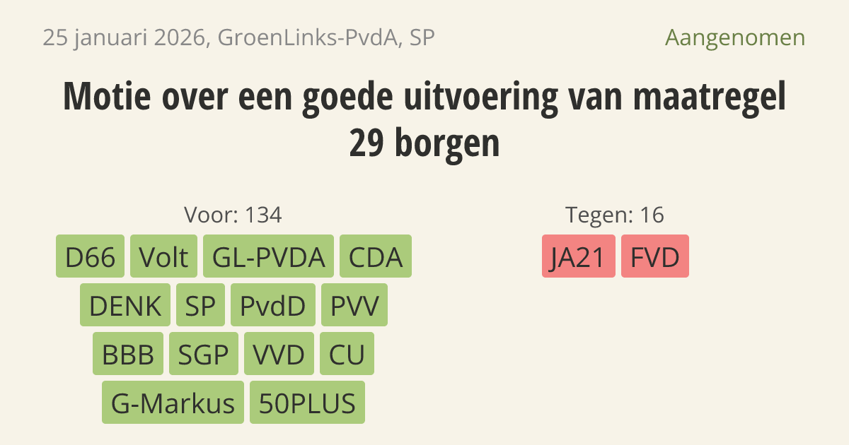 Aangenomen op 4 februari: 134 - 16