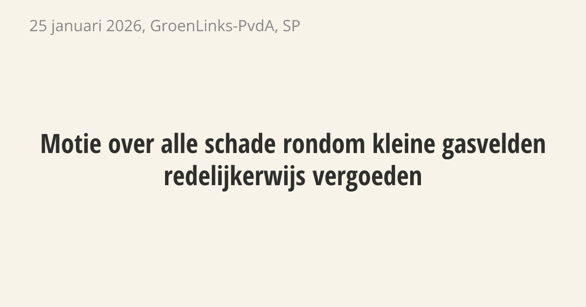 verzoekt de regering om alle schade en bijkomende herstelwerkzaamheden rondom kleine gasvelden redelijkerwijs te vergoeden en de