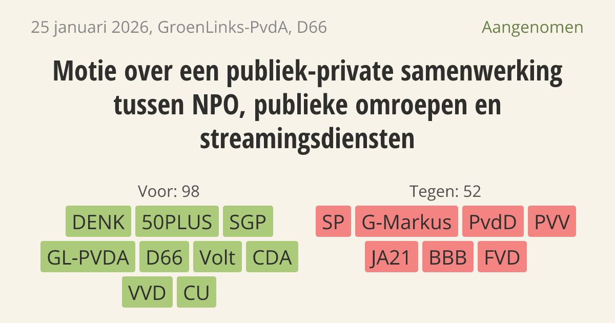[Motie van de leden Mohandis en Oualhadj over een publiek-private samenwerking tussen NPO, publieke omroepen en streamingsdiensten ]
