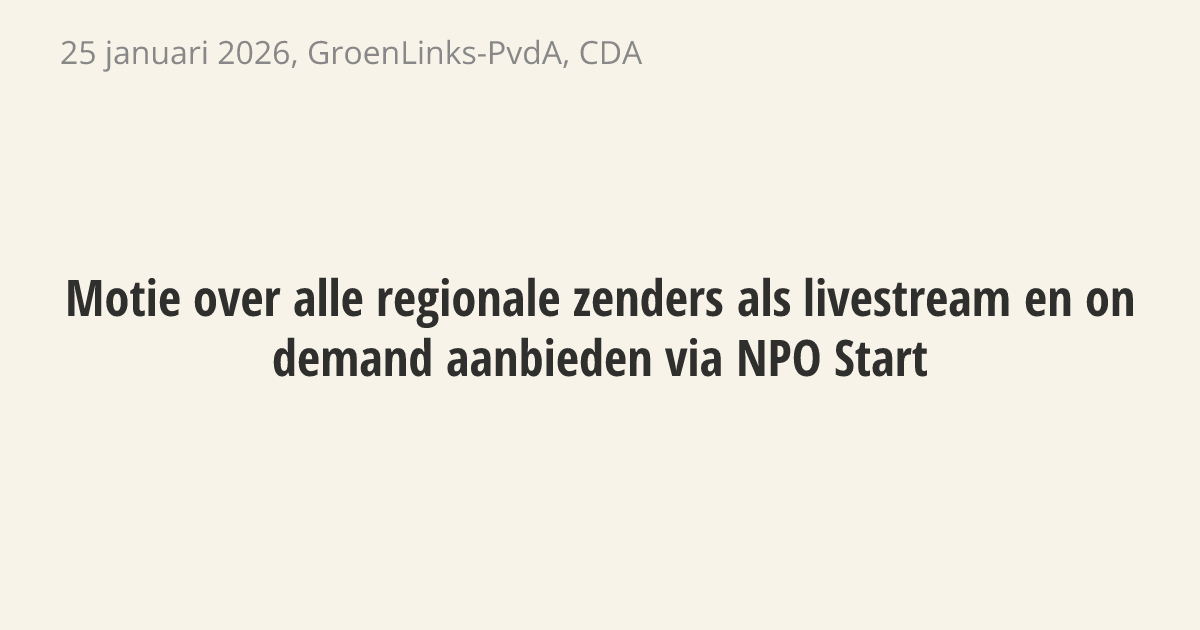 Motie van de leden Mohandis en Krul over alle regionale zenders als livestream en on demand aanbieden via NPO Start