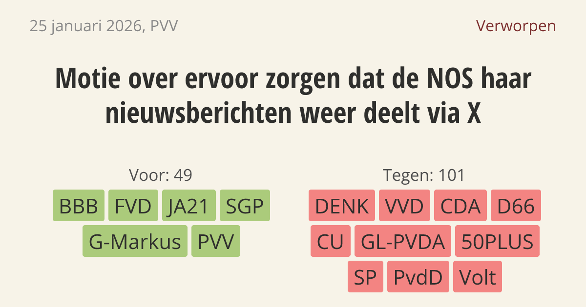 Motie van het lid Martin Bosma over ervoor zorgen dat de NOS haar nieuwsberichten weer deelt via X