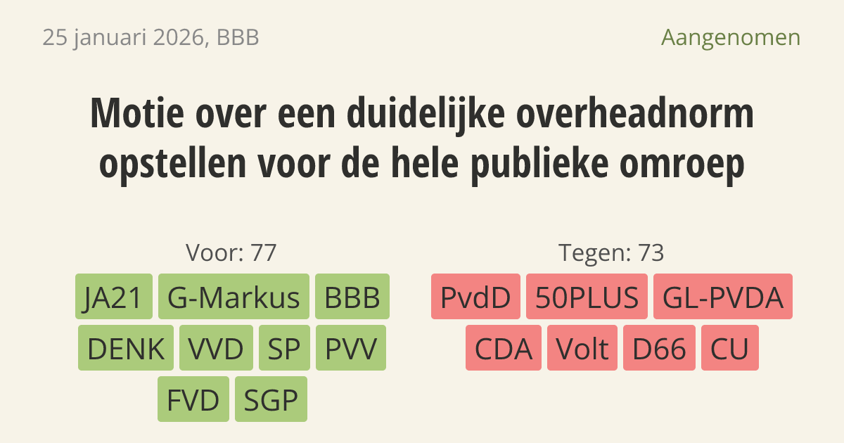 Motie van het lid Van der Plas over een duidelijke overheadnorm opstellen voor de hele publieke omroep