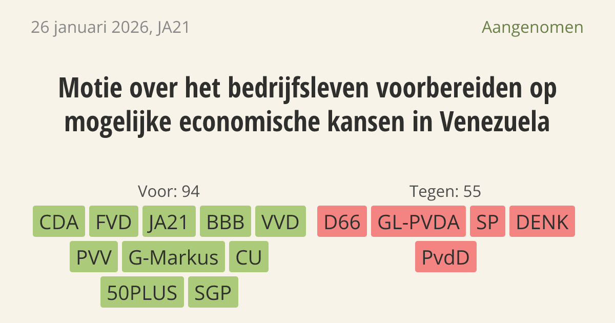 De regering moet bedrijven in het Koninkrijk voorbereiden op economische kansen in Venezuela. Dit moet volgens het Amerikaanse plan voor het herstel van dat land. Bedrijven hebben meer duidelijkheid nodig over sancties, risico's en voorwaarden om daar zaken te kunnen doen. Zo kunnen zij een belangrijke rol spelen bij de wederopbouw van de economie in Venezuela.