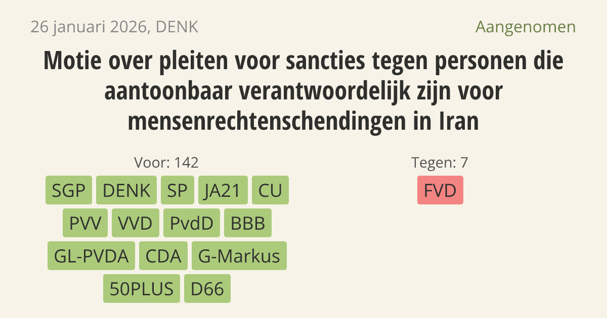 Motie van het lid Van Baarle over pleiten voor sancties tegen personen die aantoonbaar verantwoordelijk zijn voor mensenrechtenschendingen in Iran