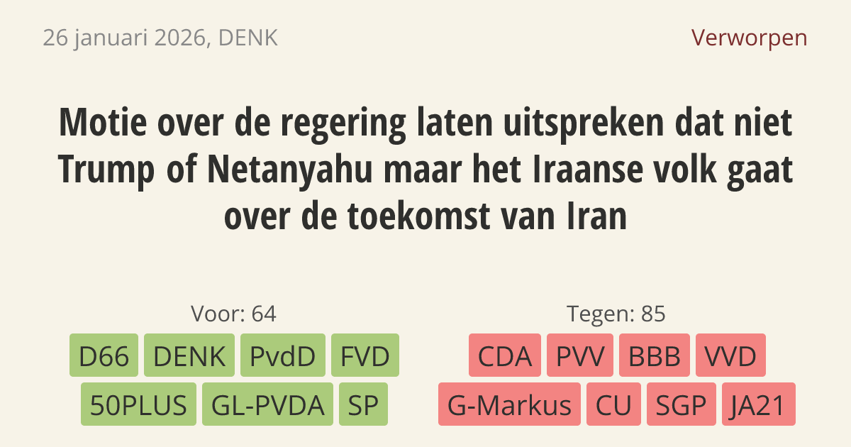 Motie van het lid Van Baarle over de regering laten uitspreken dat niet Trump of Netanyahu maar het Iraanse volk gaat over de toekomst van Iran