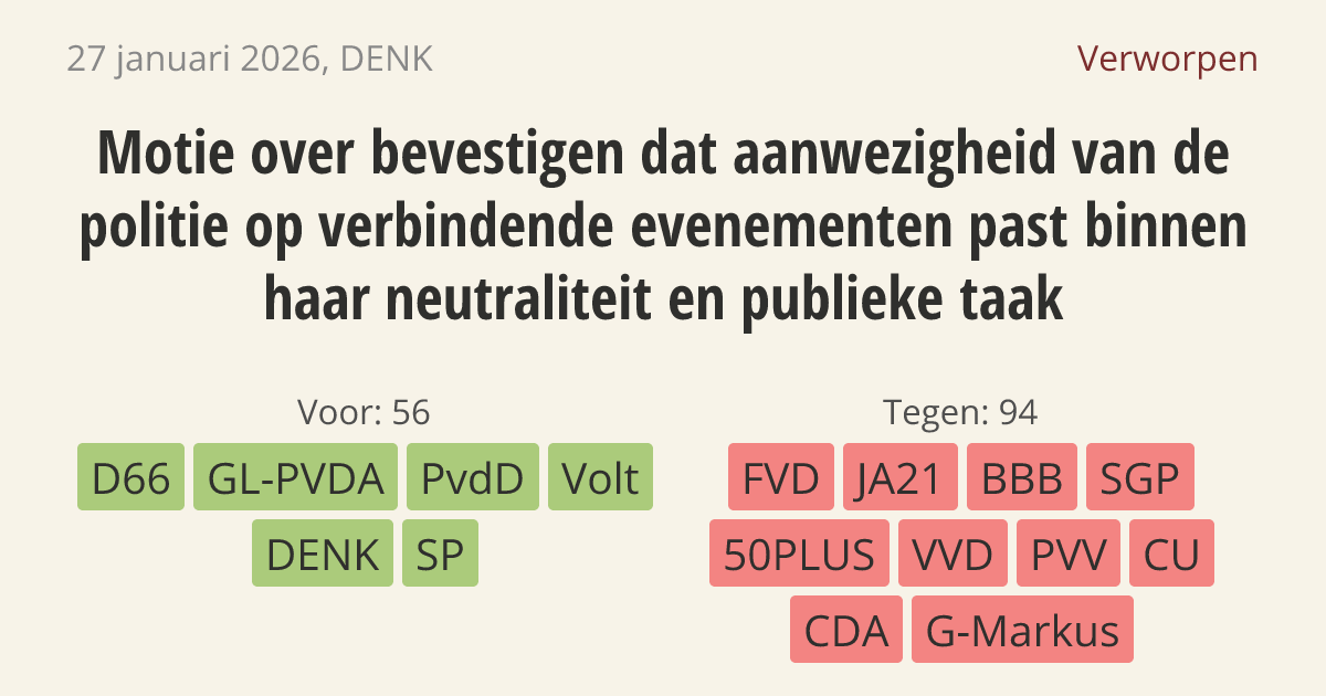 Motie van het lid El Abassi over bevestigen dat aanwezigheid van de politie op verbindende evenementen past binnen haar neutraliteit en publieke taak