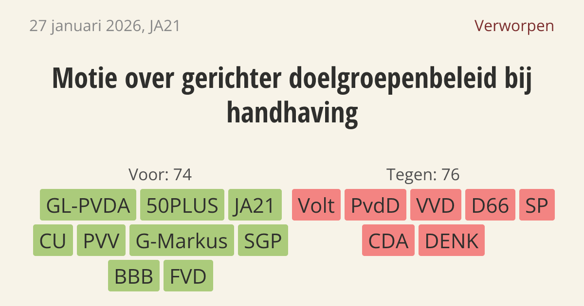 Motie van het lid Coenradie over gerichter doelgroepenbeleid bij handhaving