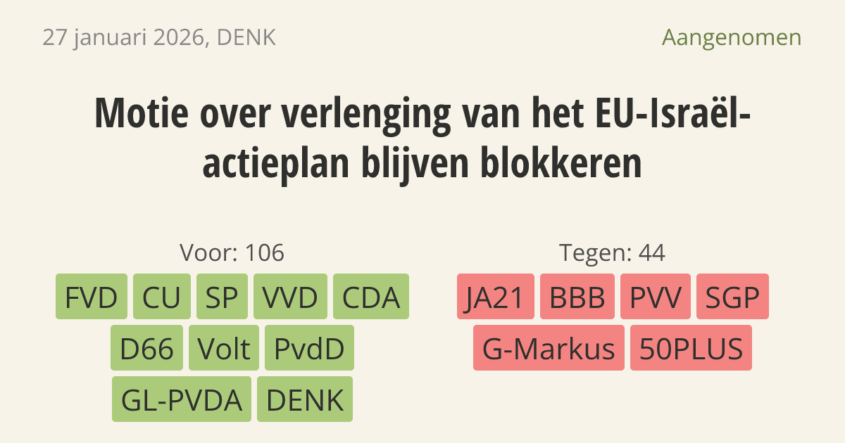Motie van het lid Van Baarle over verlenging van het EU-Israël-actieplan blijven blokkeren