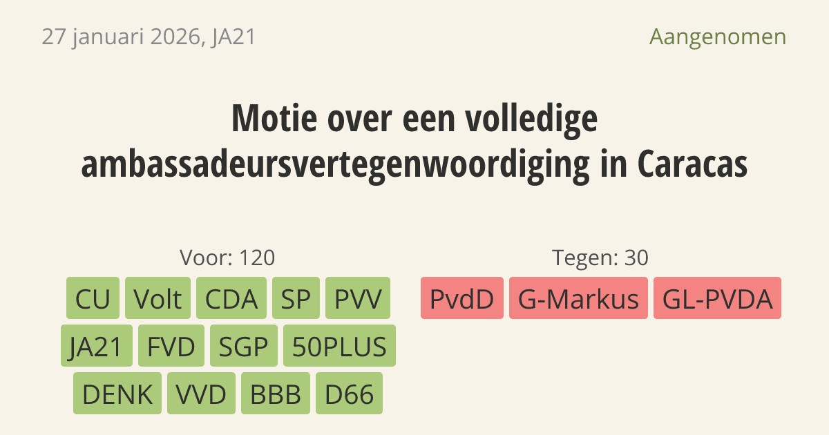 De regering moet zorgen voor een ambassadeur in de hoofdstad Caracas. Nu heeft Nederland daar alleen een tijdelijk hoofd. Een volledige ambassadeur is nodig om de belangen van Nederland en de eilanden in het Caribisch gebied goed te beschermen tijdens de onrust in Venezuela. Andere Europese landen hebben daar ook al een ambassadeur.