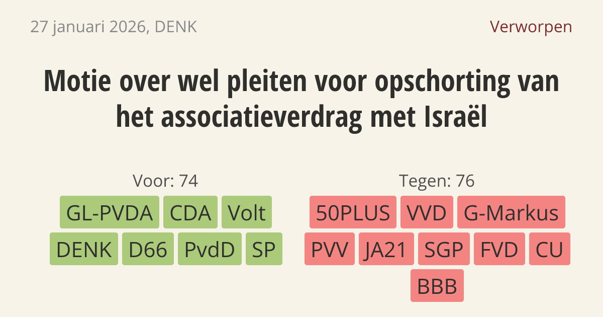 Motie van het lid Van Baarle over wel pleiten voor opschorting van het associatieverdrag met Israël