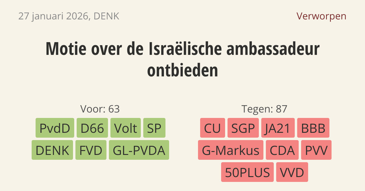 verzoekt de regering om de Israëlische ambassadeur te ontbieden