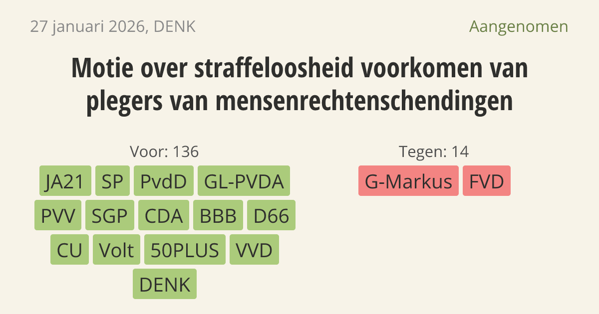 Motie van het lid Van Baarle over straffeloosheid voorkomen van plegers van mensenrechtenschendingen