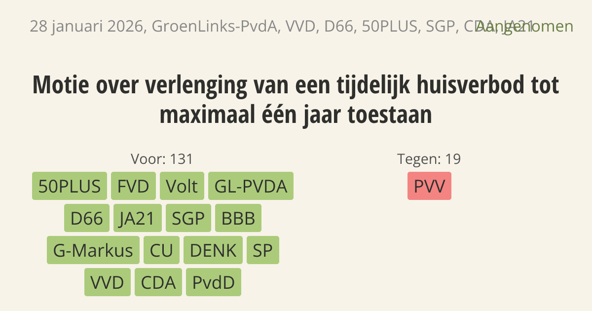 Aangenomen op 4 februari: 131 - 19