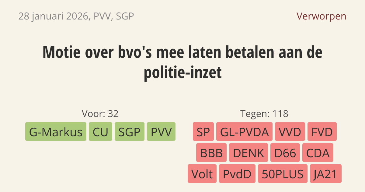 Motie van de leden Faber en Diederik van Dijk over bvo's mee laten betalen aan de politie-inzet