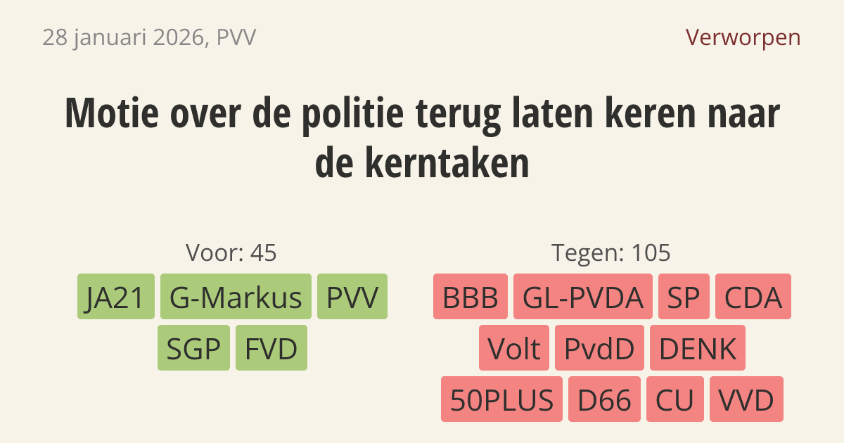 Verworpen op 4 februari: 45 - 105