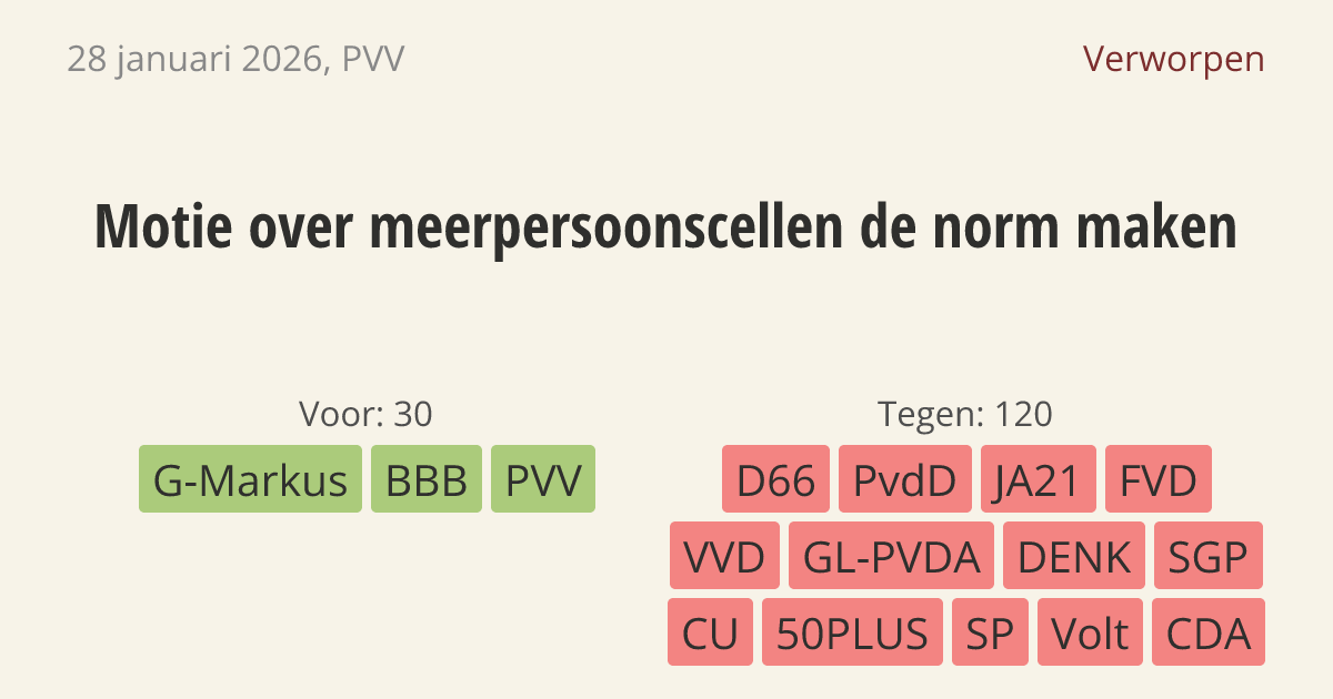 Motie van het lid Emiel van Dijk over meerpersoonscellen de norm maken