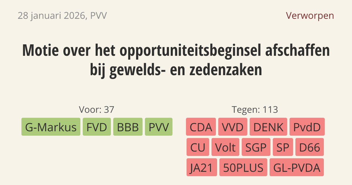Verworpen op 4 februari: 37 - 113