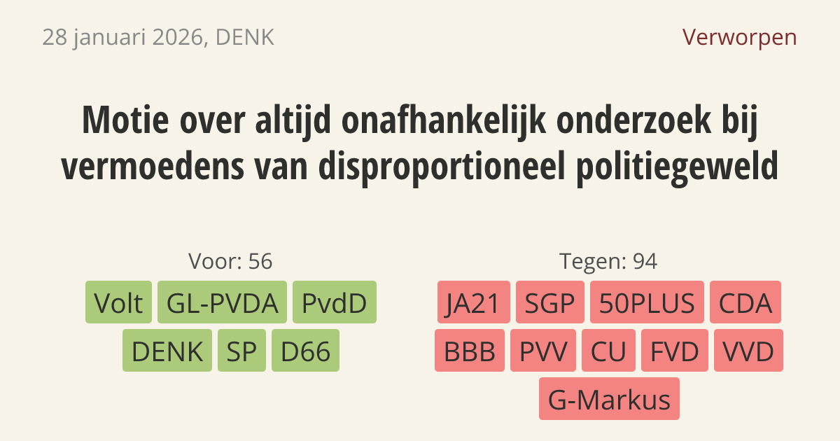 Motie van het lid El Abassi over altijd onafhankelijk onderzoek bij vermoedens van disproportioneel politiegeweld