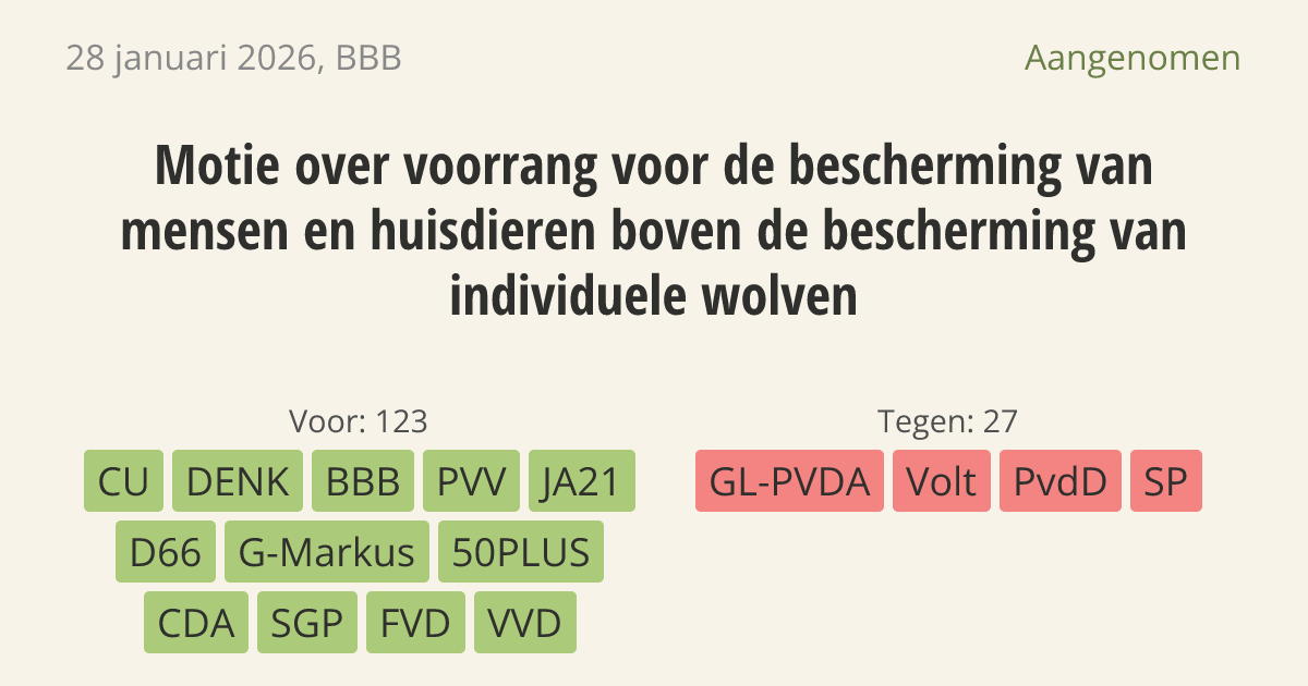 Motie van het lid Van der Plas over voorrang voor de bescherming van mensen en huisdieren boven de bescherming van individuele wolven