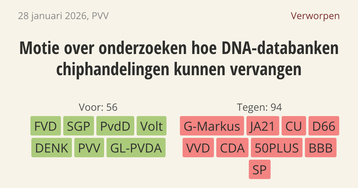 Motie van het lid Graus over onderzoeken hoe DNA-databanken chiphandelingen kunnen vervangen