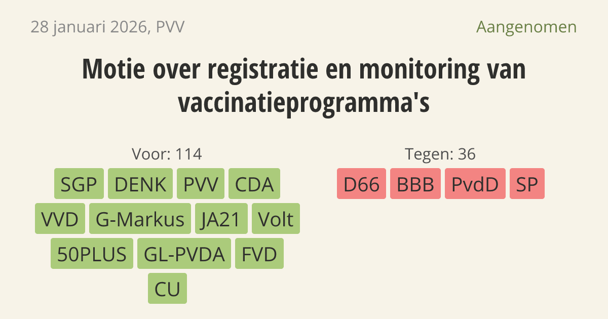 verzoekt de regering om registratie- en monitoring van vaccinatieprogramma’s waarbij ook negatieve effecten, waaronder mogelijk snellere