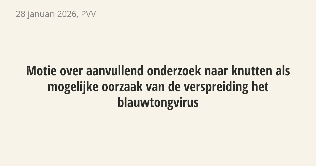 De regering moet onderzoek doen naar de oorzaken van de uitbraak van het blauwtongvirus. Mogelijk verspreidt het virus zich via afvaltreinen uit Rome of door het huidige natuurbeleid waarbij gebieden natter worden gemaakt. Deze factoren kunnen ervoor zorgen dat besmettelijke insecten, zoals knutten, sneller overleven en het virus verspreiden onder vee.