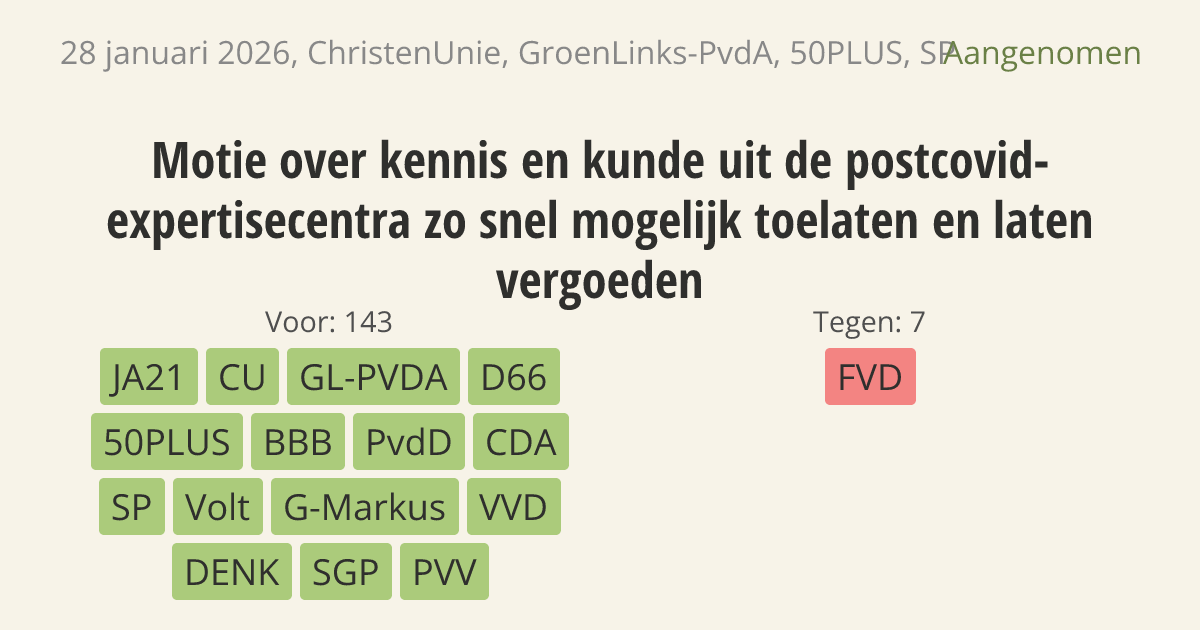 Motie van het lid Bikker c.s. over kennis en kunde uit de postcovid-expertisecentra zo snel mogelijk toelaten en laten vergoeden