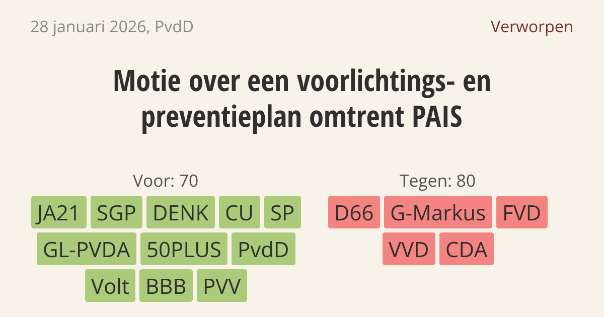 Motie van het lid Kostic over een voorlichtings- en preventieplan omtrent PAIS
