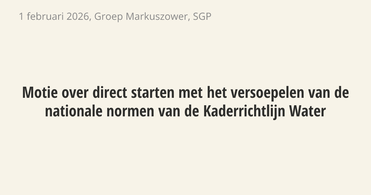 De regering moet de nationale regels voor de Kaderrichtlijn Water (de Europese regels voor schoon water) versoepelen. In het coalitieakkoord is afgesproken om de uitvoering van deze richtlijn eenvoudiger te maken.