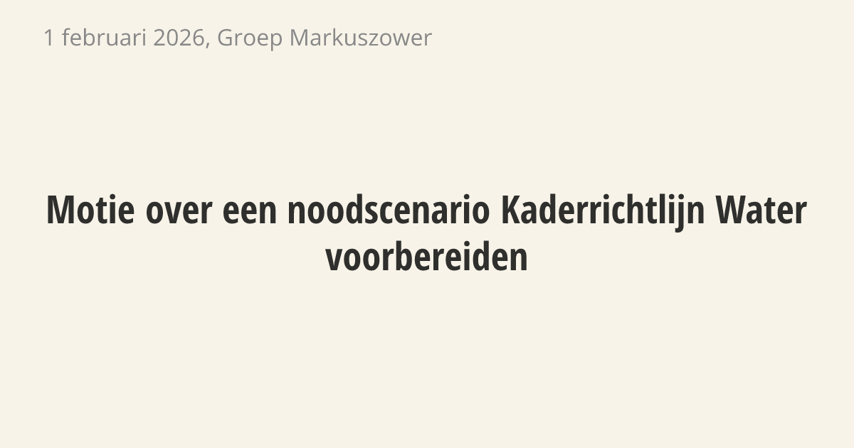 De regering moet een noodplan maken voor de Kaderrichtlijn Water (KRW). Dit zijn Europese afspraken over schoon water. Nederland gaat deze doelen waarschijnlijk niet halen. Zonder plan dreigen de bouw van huizen en wegen stil te vallen, net zoals bij de stikstofcrisis.